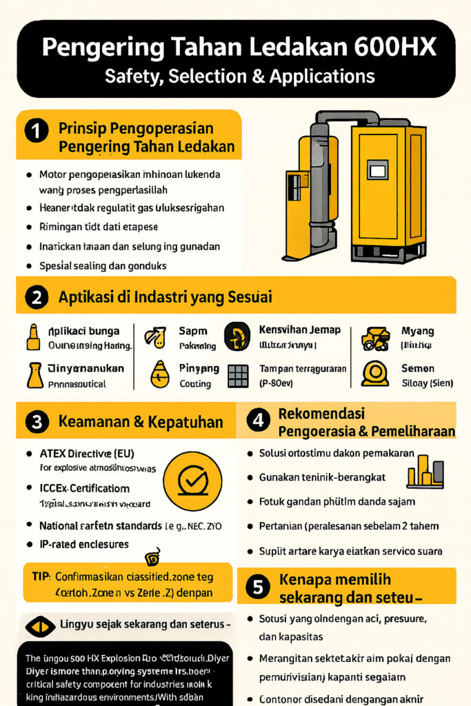 Tip: selalu pastikan klasifikasi area (Zone 1 / Zone 2) sebelum memilih model pengering.