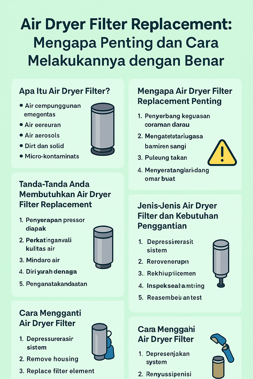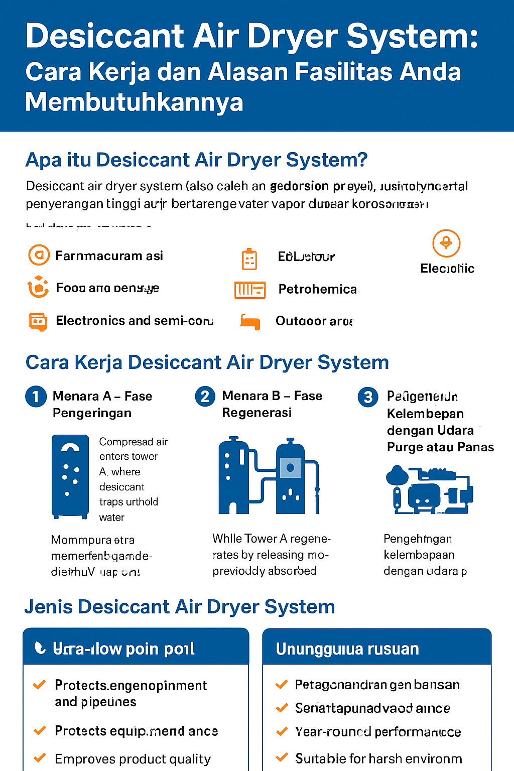 Dalam panduan lengkap ini, kita akan membahas jenis utama pengering udara terkompresi, prinsip kerjanya, manfaat, dan tips pemilihan agar Anda bisa memilih sistem terbaik sesuai kebutuhan.