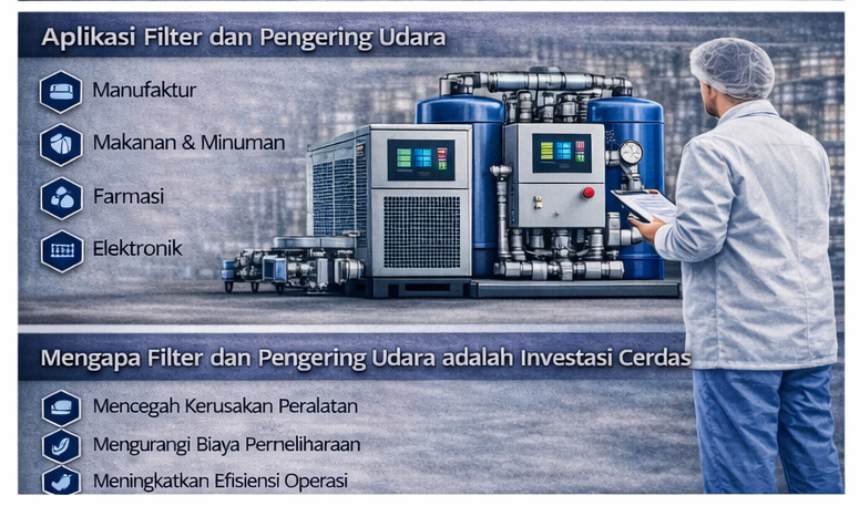 Dengan memilih kombinasi teknologi filtrasi dan pengeringan yang tepat, perusahaan dapat membangun compressed air system yang lebih andal, lebih efisien, dan lebih hemat biaya. Baik untuk aplikasi manufaktur umum maupun proses industri yang lebih menuntut, clean and dry compressed air adalah fondasi dari operasi yang stabil.