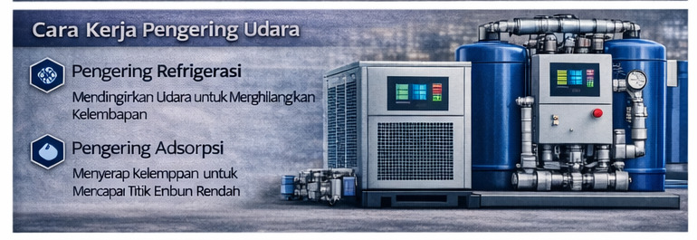 Ada berbagai teknologi dryer, tetapi tujuan utamanya sama, yaitu mengurangi kadar kelembapan dalam compressed air ke tingkat yang sesuai untuk aplikasi.