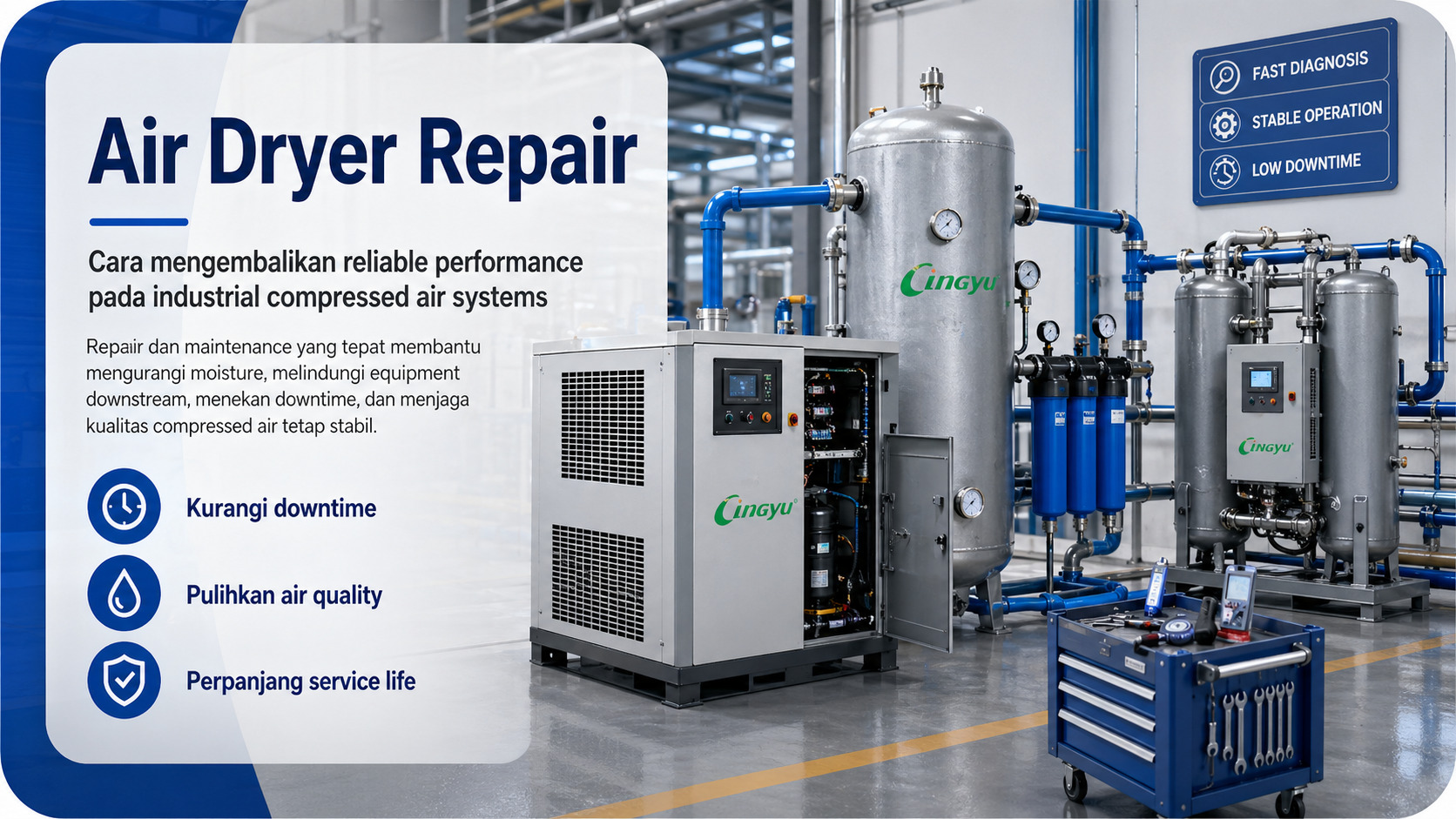 Industrial air dryer for compressor bukan sekadar aksesoris—ini merupakan komponen vital untuk melindungi peralatan, menjaga efisiensi, dan memastikan kualitas compressed air dalam industri. Dengan memilih tipe dryer yang tepat dan merawatnya secara baik, bisnis dapat mencapai keandalan operasional jangka panjang, mengurangi biaya perawatan, dan memastikan pasokan udara berkualitas tinggi untuk semua aplikasi industri.
