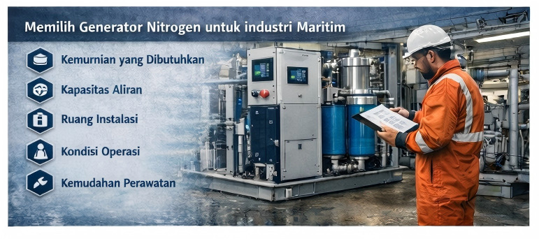Pilihan yang tepat bergantung pada jenis kapal, aplikasi, kebutuhan purity, utilitas yang tersedia, dan prioritas operasional.