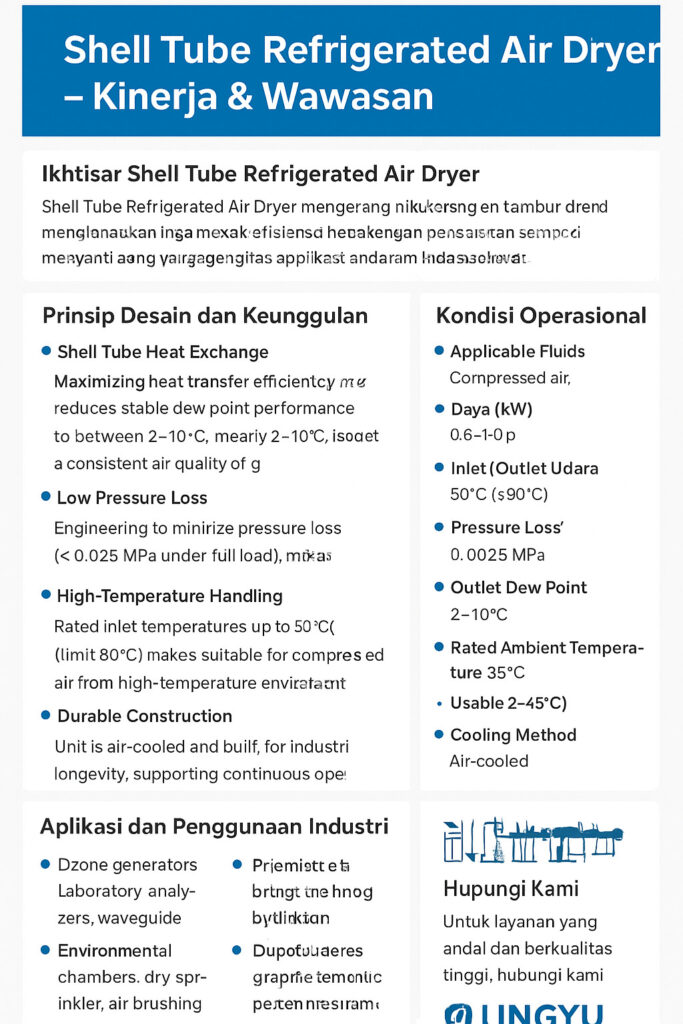 Shell Tube Refrigerated Air Dryer dirancang untuk menghilangkan kelembapan secara efisien dari sistem udara bertekanan. Selain fungsi utamanya, banyak pengguna ingin mengetahui stabilitas, efisiensi energi, serta kesesuaiannya untuk aplikasi industri dengan berbagai volume udara.